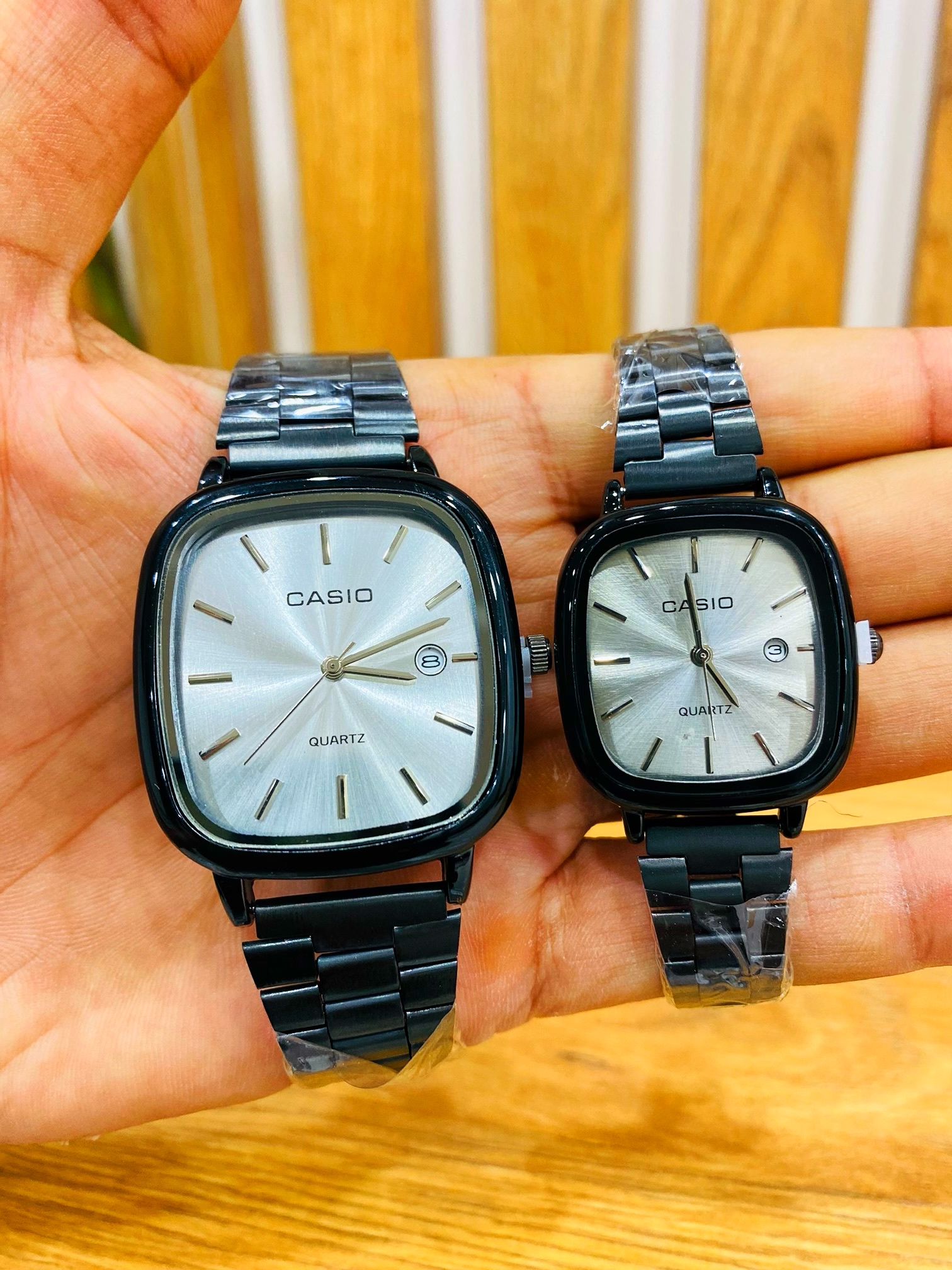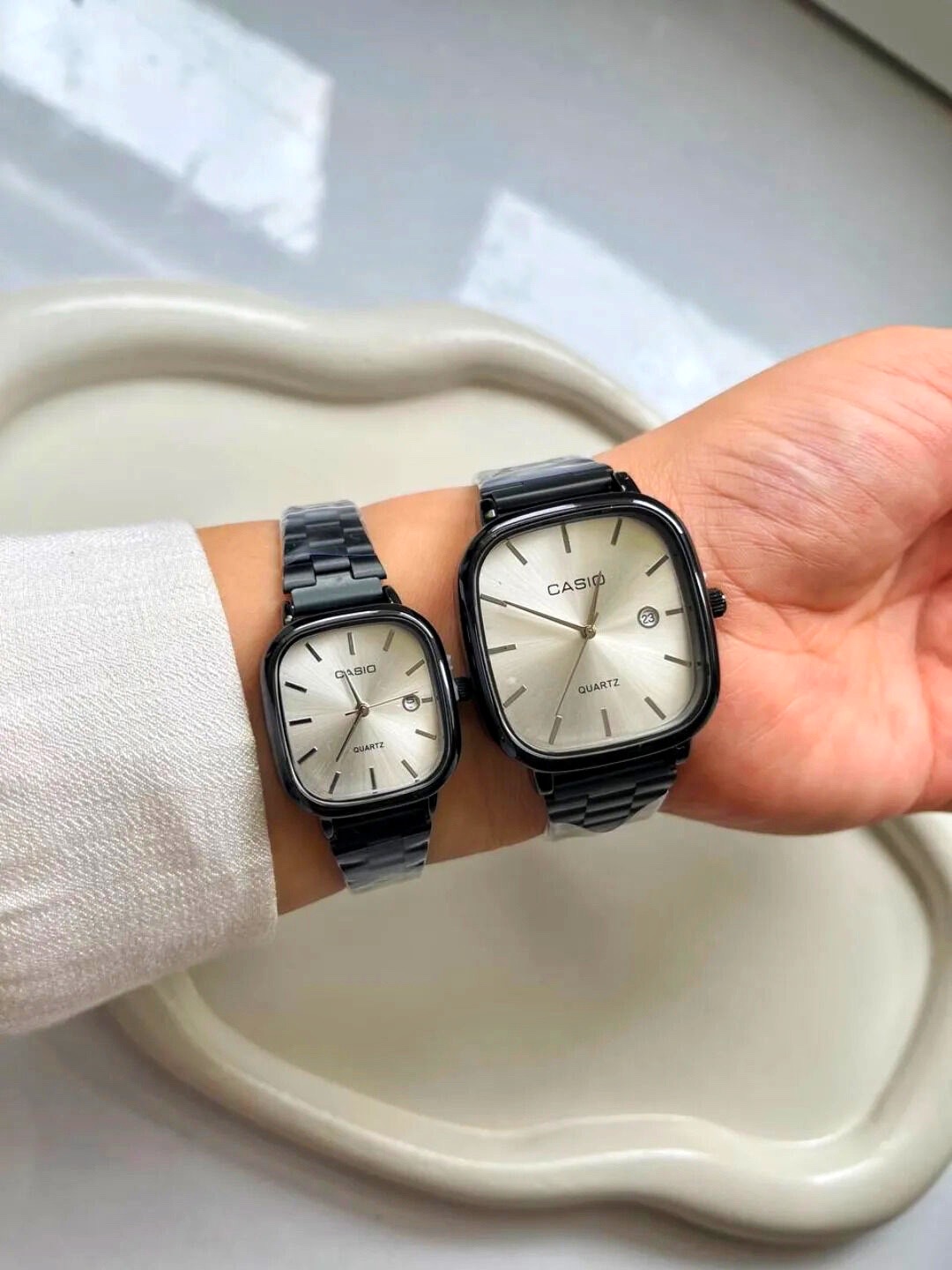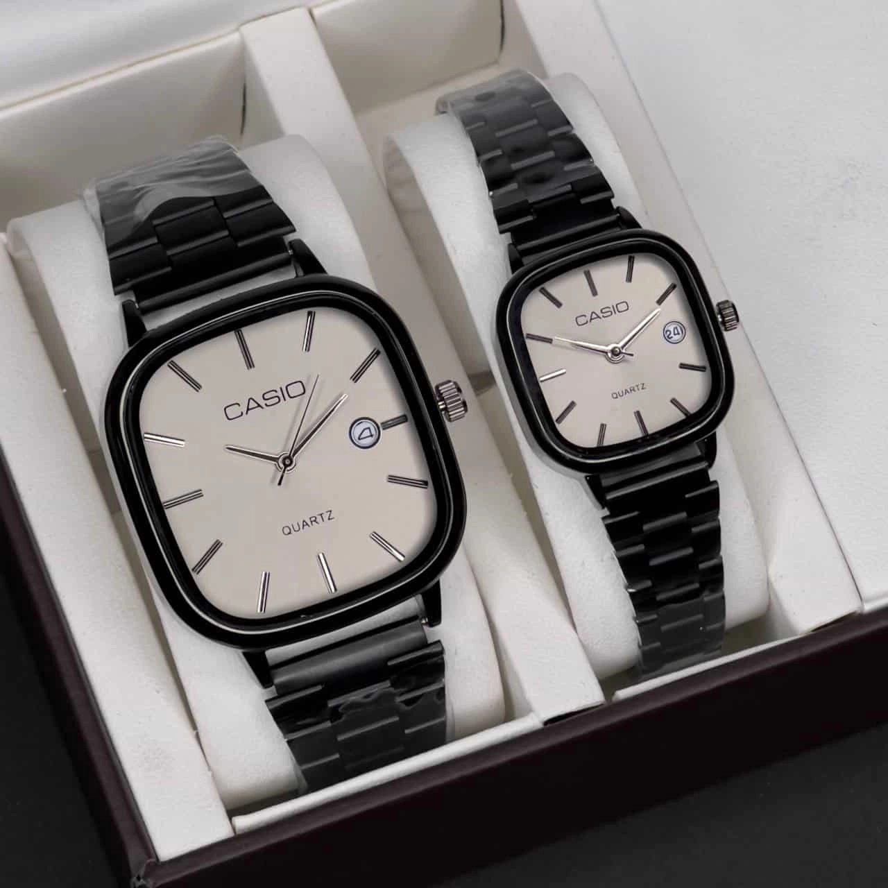 با ست ساعت مچی زنانه و مردانه کاسیو Casio، شیک و هماهنگ باشید! این ترکیب جذاب از صفحه سفید و بند استیل مشکی، نمادی از استایل و دوام است. هدیهای ایدهآل برای زوجهایی که به دنبال ظاهری خاص و هماهنگ هستند. همین حالا این ست بینظیر را سفارش دهید و لحظات خود را با زیبایی و دقت همراه کنید!