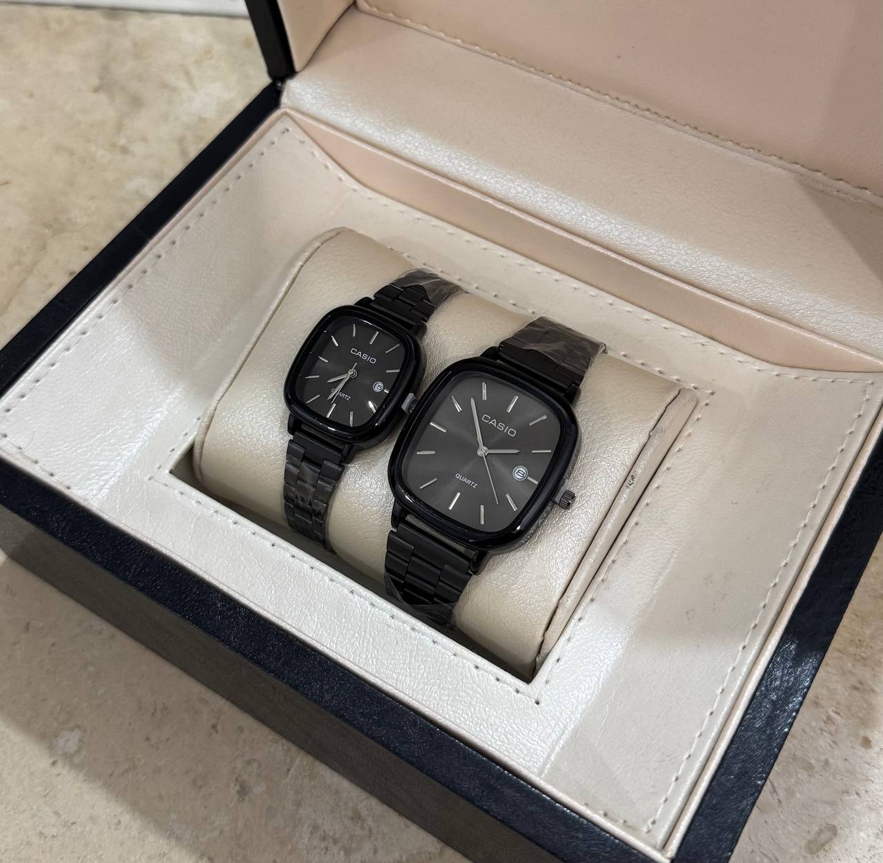 به دنبال هدیهای شیک و ماندگار هستید؟ ست ساعت مچی زنانه و مردانه Casio با بند استیل مشکی، انتخابی بینظیر و خاص برای شماست. طراحی مدرن و کیفیت اصل این محصول، جاذبهای خاص به هر استایل میبخشد. یک هدیه جذاب و ماندگار که هر لحظه یادآور عشق و سلیقه شما خواهد بود. همین حالا سفارش دهید!