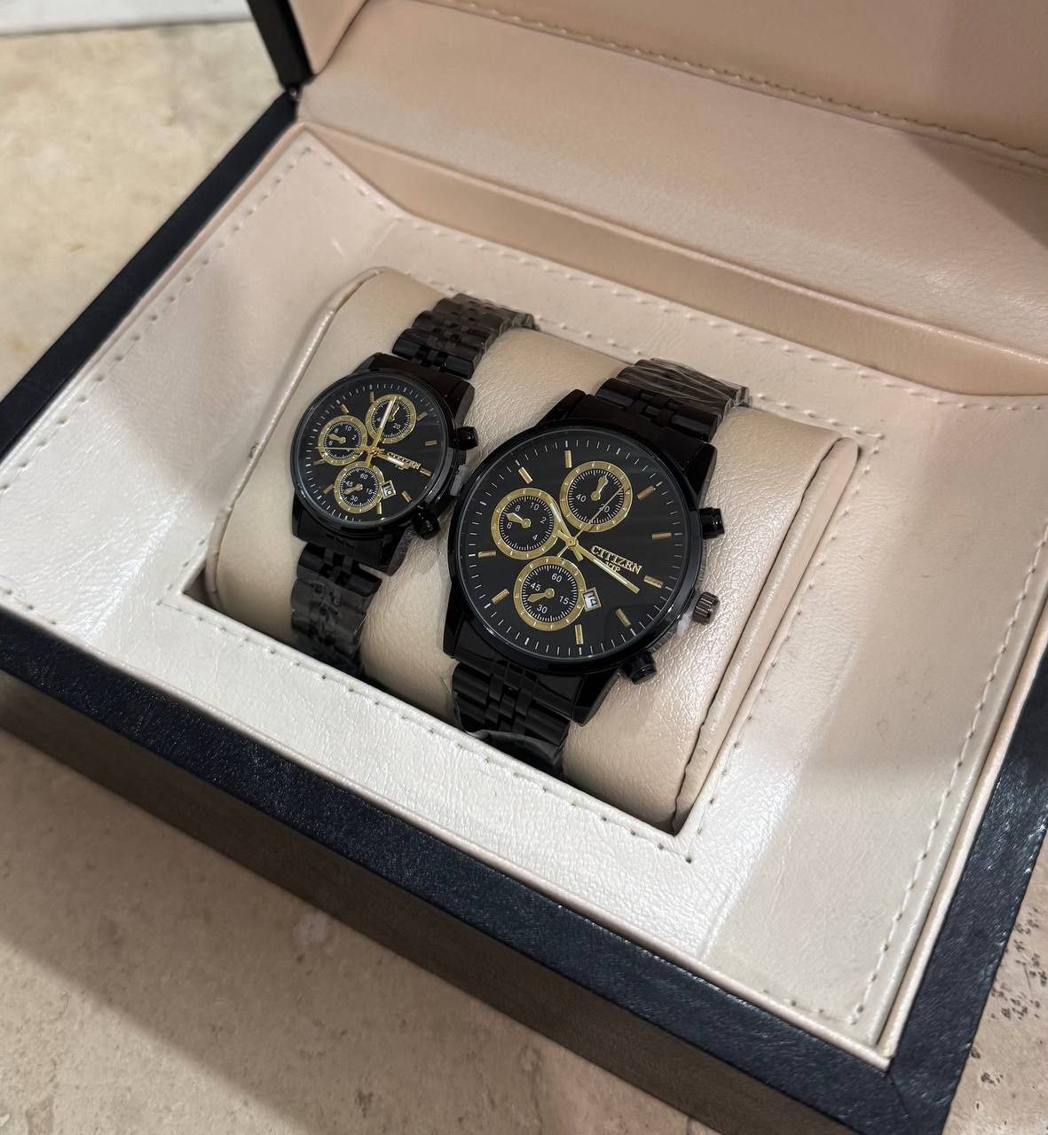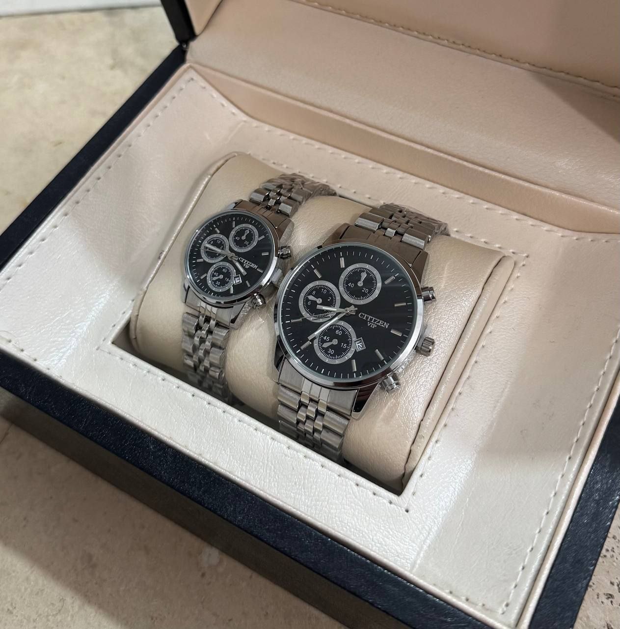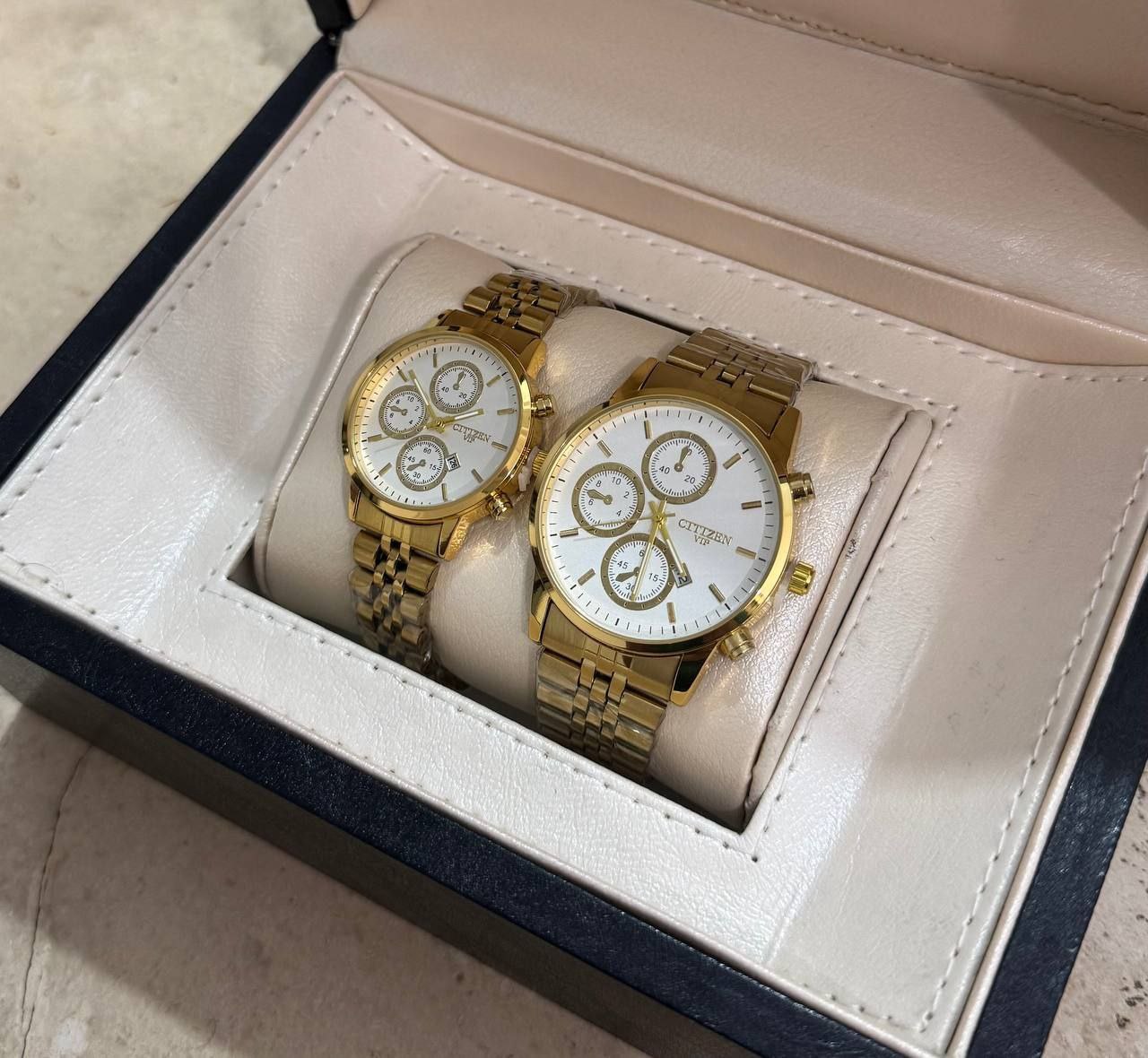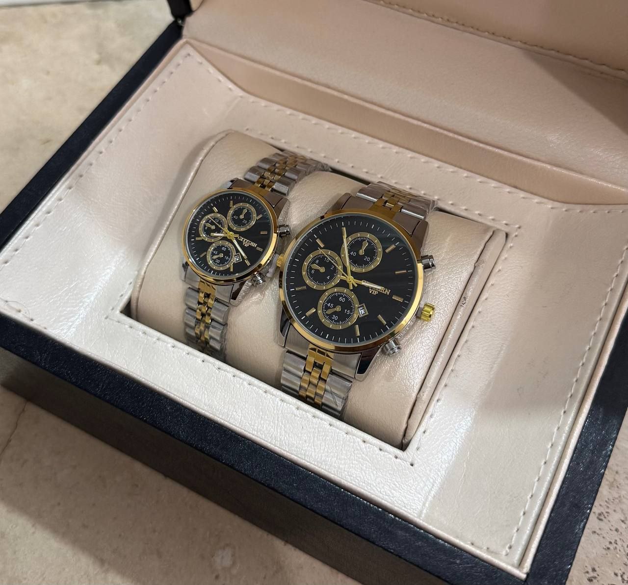 درخشش بینظیر و همگام با زمان با ست ساعت مچی زنانه و مردانه طلایی CITIZEN VIP. طراحی شیک و مدرن با بند استیل مقاوم، ایدهآل برای زوجهایی که به دنبال استایل هماهنگ و لاکچری هستند. دقیق، با دوام و خاص، این ست انتخابی بینظیر برای هدیهای ماندگار و جذاب است. همین حالا خرید کنید و بدرخشید!